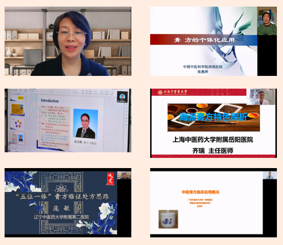 開幕式結(jié)束后,大會(huì)開展了線上學(xué)術(shù)報(bào)告和學(xué)術(shù)交流活動(dòng)。董瑞會(huì)長(zhǎng)做了《中醫(yī)膏方概論》的學(xué)術(shù)報(bào)告;北京中醫(yī)藥大學(xué)蘇慧萍教授、中國(guó)中醫(yī)科學(xué)院西苑醫(yī)院張燕萍教授、港澳臺(tái)中醫(yī)醫(yī)師聯(lián)合促進(jìn)會(huì)總會(huì)會(huì)長(zhǎng)盧致鵬教授、上海中醫(yī)藥大學(xué)岳陽中西醫(yī)結(jié)合醫(yī)院齊瑞教授、遼寧中醫(yī)藥大學(xué)附屬第二醫(yī)院龐敏教授、廣西中醫(yī)藥大學(xué)第一附屬醫(yī)院賓博平教授六位中醫(yī)膏方專業(yè)委員會(huì)副會(huì)長(zhǎng)分別作了《膏方防治慢阻肺的組方用藥特點(diǎn)》《膏方的個(gè)體化應(yīng)用》《脾胃系統(tǒng)(慢性胃炎疾?。┑闹形麽t(yī)論述臨床觀察與證型研究》《海派膏方的特點(diǎn)》《膏方臨床應(yīng)用思路》《中醫(yī)膏方臨床概論》的學(xué)術(shù)報(bào)告,并與在線專家學(xué)者進(jìn)行了互動(dòng)交流。中醫(yī)膏方專業(yè)委員會(huì)第二屆理事會(huì)換屆會(huì)議暨第五屆學(xué)術(shù)年會(huì)取得了圓滿成功。