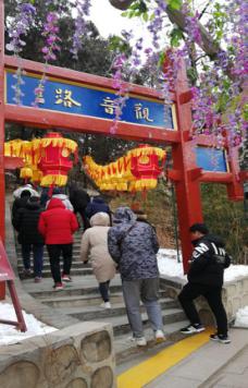 第二天早上9:00點(diǎn),我們團(tuán)體到達(dá)紅螺寺景區(qū),位于北京市懷柔區(qū)城北5公里的紅螺山南麓,距北京市區(qū)55公里,景區(qū)總面積800公頃,國家AAAA級旅游區(qū)。始建于東晉咸康四年(公元338)年,原名“大明寺”(明正統(tǒng)年間易名“護(hù)國資福禪寺”,因紅螺仙女的美妙的傳說,俗稱“紅螺寺”)。紅螺寺坐北朝南,依山勢而建,布局嚴(yán)謹(jǐn),氣勢雄偉。現(xiàn)在時(shí)節(jié)三九,北方冰天雪地,此時(shí)攀登由緩緩的山勢而上,身體慢慢散發(fā)熱量,爬到山頂已經(jīng)是大汗淋漓,站在頂端俯視村莊,遠(yuǎn)眺雁西湖畔、懷柔水庫,高矮錯落的房子......心境舒爽。