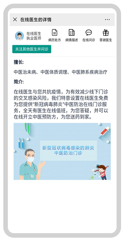 在線診療服務旨在通過在線診療平臺免費賦能就醫(yī)體驗,讓患者在家安心隔離,避免患者對病情不清楚隨意前往醫(yī)院造成不必要的聚集性感染,從而降低感染風險。合理利用醫(yī)療資源,進一步讓醫(yī)療衛(wèi)生行業(yè)和廣大人民群眾都共享智慧醫(yī)療創(chuàng)新中心帶來的高效便利診療服務,保障廣大患者及公眾的生命安全和身體健康。