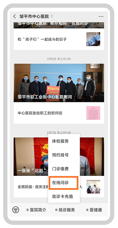 微信公眾號搜索:鄒平市中心醫(yī)院,或掃描醫(yī)院二維碼,關注公眾號。