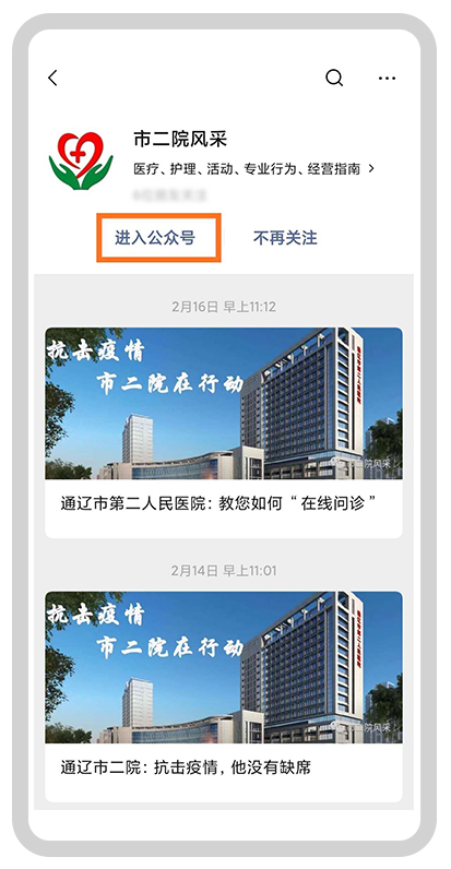 微信公眾號搜索:市二院風采,或掃描醫(yī)院二維碼,關注公眾號。