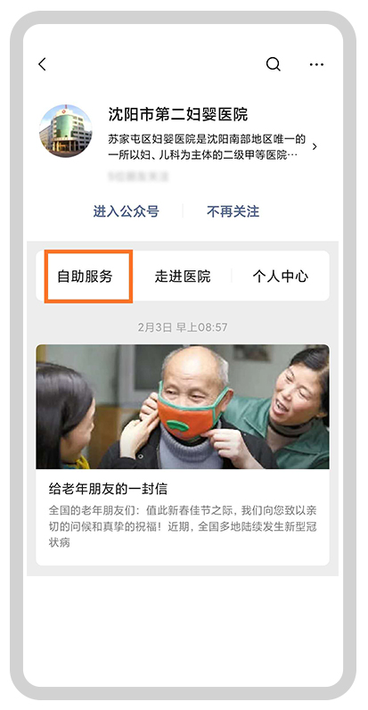 微信公眾號搜索:沈陽市第二婦嬰醫(yī)院,或掃描醫(yī)院二維碼,關注公眾號。