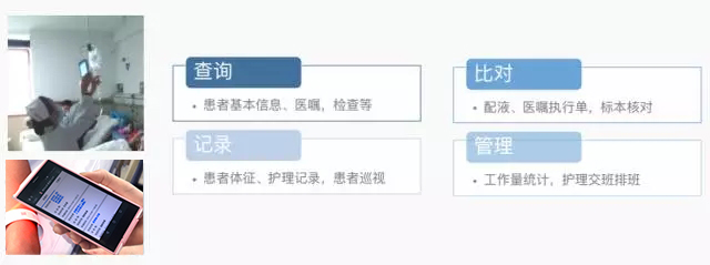 醫(yī)院的護士在日常操作中,每個環(huán)節(jié)都通過移動護士去記錄。在此過程中,移動護士會將護士的記錄工作,加上一些系統(tǒng)限制。如護士檢查患者的輸液信息,現(xiàn)階段大多是通過人工去核對,而使用移動護士,可以直接掃碼核對。同時,移動護士會強制要求患者的輸液瓶簽和患者腕帶之間一一對應,這就相當于增加了一個自動化的識別判斷,讓更換過程又快又準。