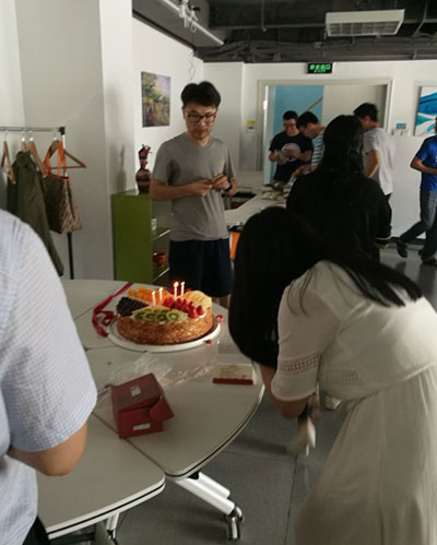 接下來“傳統(tǒng)生日會”照例為5月份過生日的同事點燃蠟燭(本月為七位天坦伙伴),唱起祝福的生日歌,分享香甜可口的蛋糕,頒發(fā)“功夫熊貓”紀念品,集齊24式功夫熊貓可能得到天坦超級大獎,這也是“壽星”最大的幸運,同時也是為了激勵天坦人勇往拼搏、直線進取設(shè)置的最大獎項。