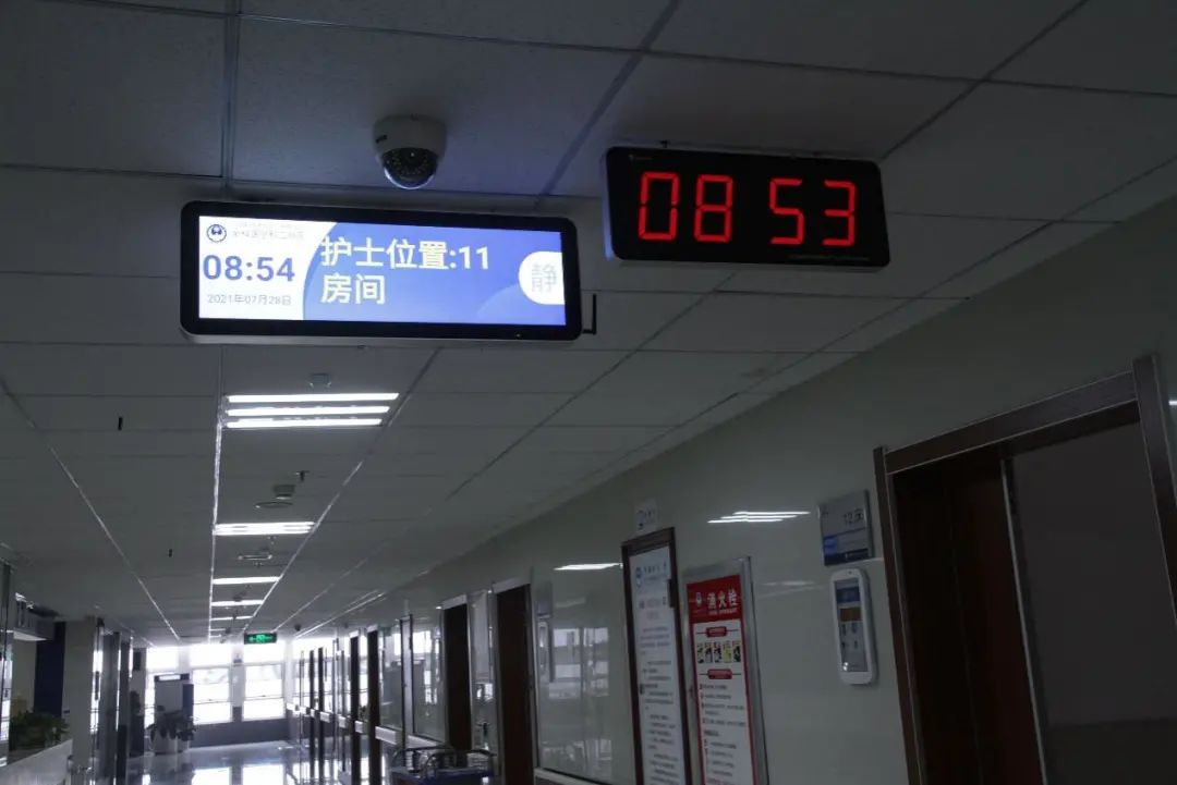 如果是在比較繁忙的集中查房和交接班時(shí)間,患者還可以通過(guò)走廊上的顯示屏,實(shí)時(shí)查看醫(yī)護(hù)位置。