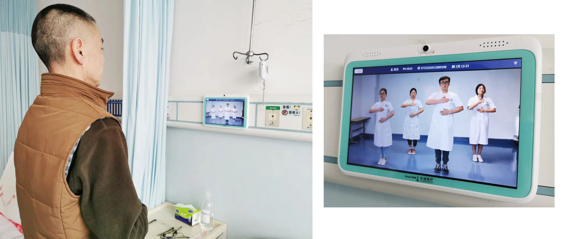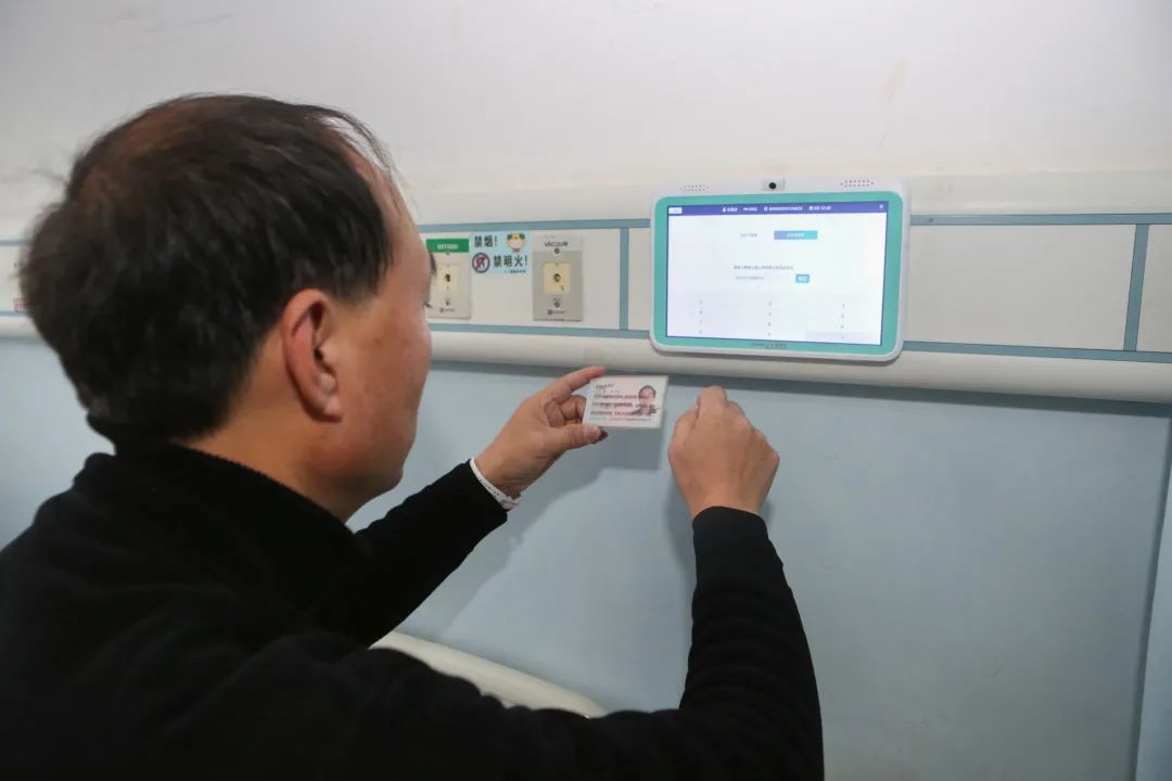 在市中心醫(yī)院心胸外科病房,剛入院的林叔叔正對著病床床頭的電子屏幕跟著醫(yī)護人員一起做呼吸訓練操……林叔叔因肺部結節(jié)入院準備手術,術前術后的呼吸訓練能幫助他快速康復,“以前我們會把患者集中組織起來教他們做呼吸訓練操,但是可能學一次就忘了,現(xiàn)在我們把這些健教視頻放在患者床頭的電子屏上,患者可隨時可以點進去跟著練習,”護士長李金學介紹,“除此之外,林叔叔還可以通過這塊屏幕實現(xiàn)診療計劃查詢、床旁掃碼繳費、費用明細查詢……以后我們還想利用這套信息系統(tǒng)完成床旁結算,患者從住院到出院,在病房就能一站式完成。”
